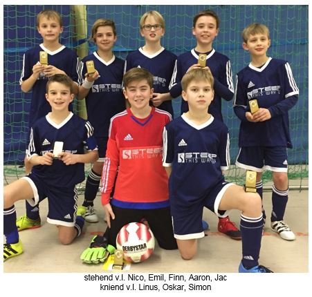 Unser erstes Hallenturnier verlief mit höhen und tiefen. Unsere Jungs mussten sich erst mit der Halle vertraut machen und wurden von Spiel zu Spiel stärker. In unserem letzten Spiel gegen den Turniersieger wäre mehr drin gewesen. Wir waren klar überlegen und spielten uns viele Torchancen heraus, die wir leider nicht nutzten. Durch einen "Kullerball" gerieten wir in Rückstand den wir nicht mehr aufholen konnten. Letztendlich konnten wir das Turnier mit dem 5. Platz abschließen.
